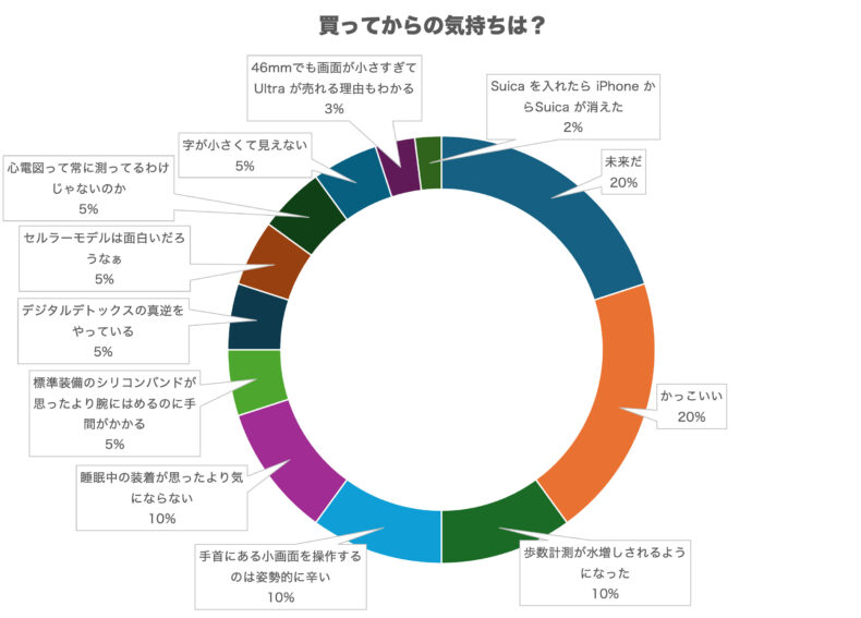 装着してみましたが、大きい方の 46mmでも実に画面が小さい。ちょっと文字を読むのが辛いです。でも常時表示だし、画面がすごい綺麗。特にプロテクタとかフィルムは登山でもしない限り使わない予定です。もっとも、登山時は G-SHOCK か…。