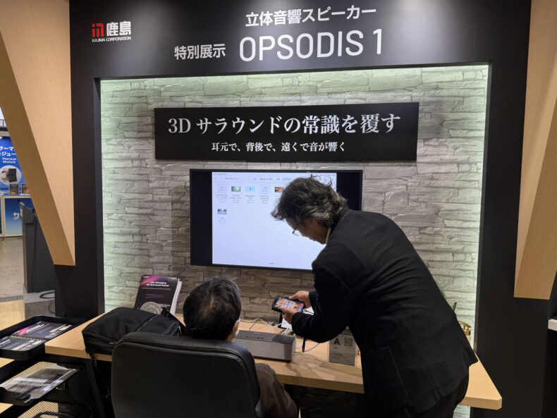 色々見どころはあるのですが、今日のブログでは一点だけ。半導体メーカー ANALOG DEVICES社のブースにあった、鹿島建設の立体音響スピーカー 「OPSODIS 1」。すでにクラファンで販売された製品ですが、一般販売は来年とのこと。