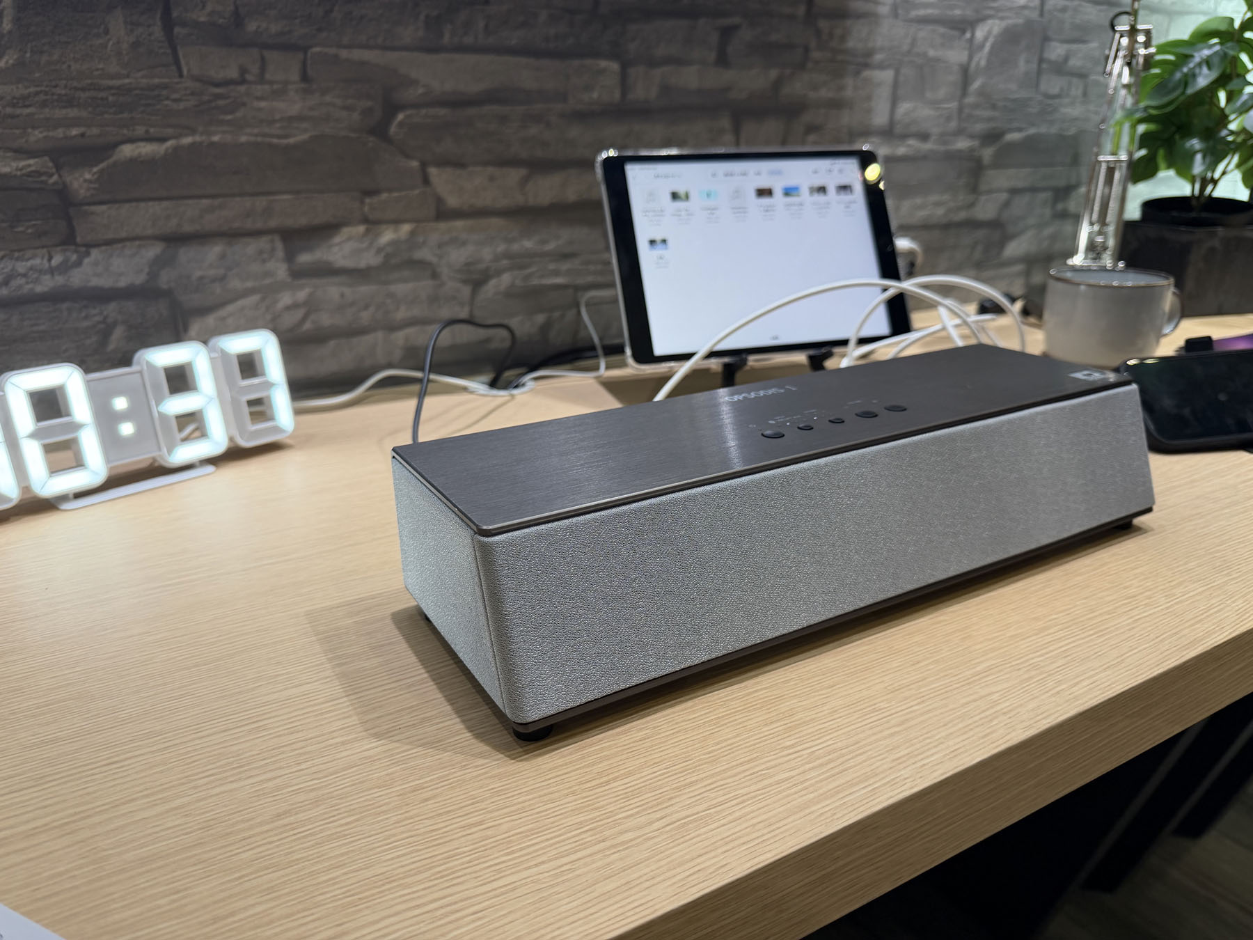 基本的にはニアフィールドリスニング用途で、1人~並んで3人程度までの使用を前提にしているとのこと。スピーカーから離れるほど、3D効果が薄くなります。ただ、3D効果は環境の S/N とも関係しているというのが面白い。