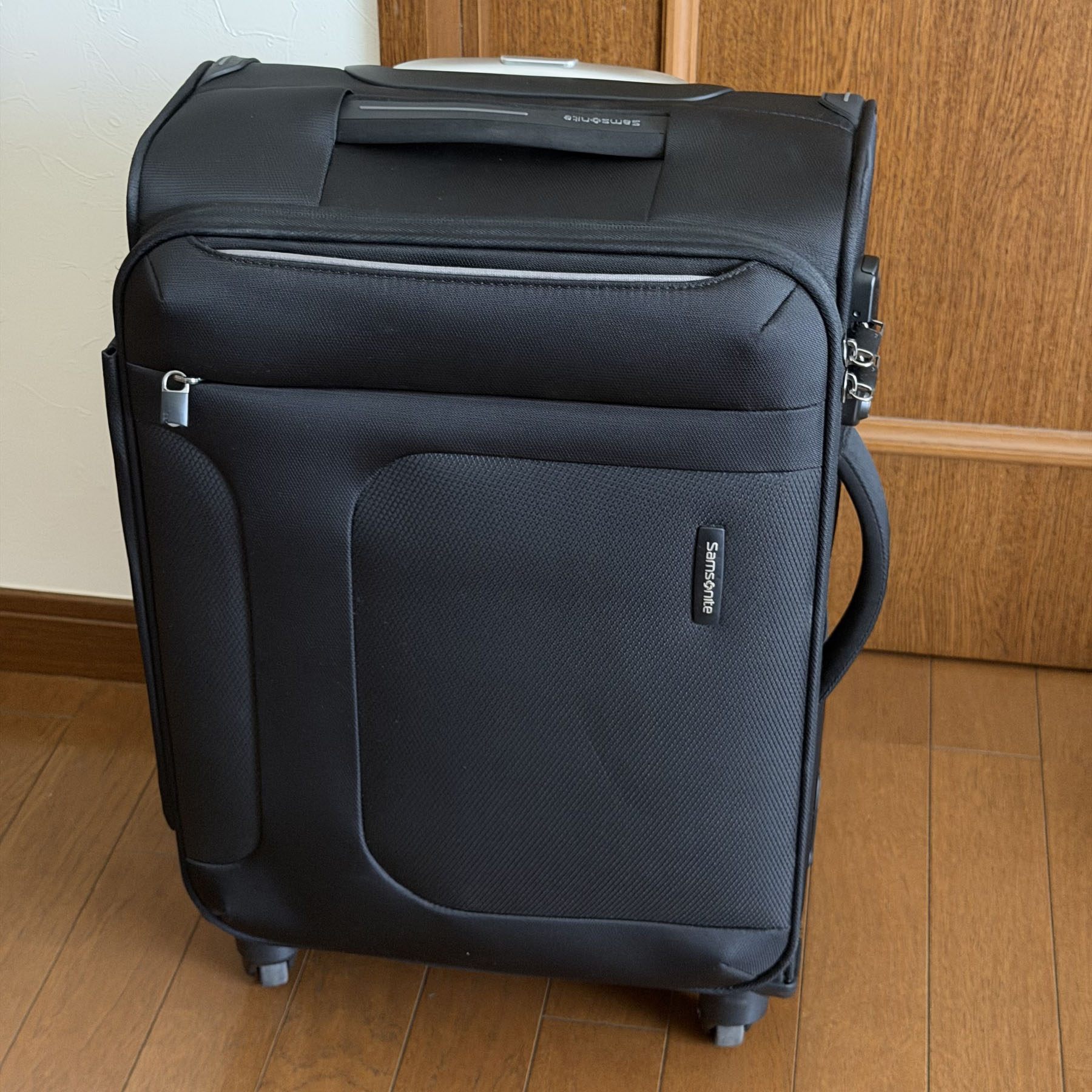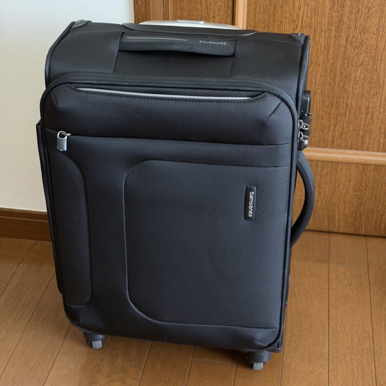 愛用しているサムソナイトの機内持ち込みサイズのスーツケース。サムソナイトはスーツケースの大きさを「スピナー」という名前で表現していて、これは「スピナー55」です。