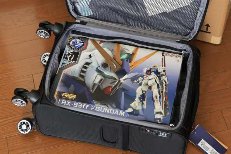以前のスーツケースは福岡に買いに行った「RG νガンダム」がシンデレラフィットだったので、今回はどうか試してみました。