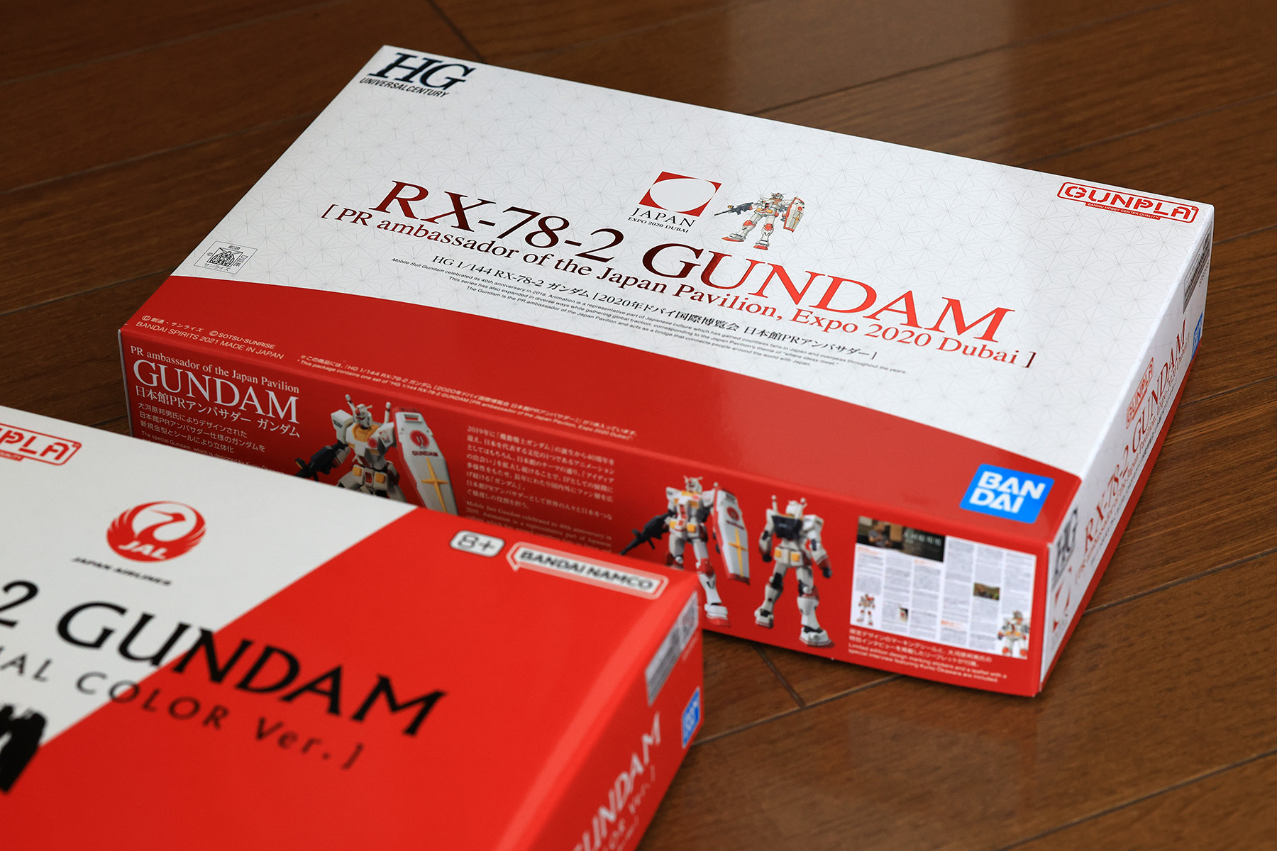 JALに乗った知人に頼んでガンプラを入手した方がいるようですが、奇遇ですね(奇遇じゃない)、私も入手しました。これ、おひとり様1個なのでそのJALに乗る人がガンプラ欲しいとダメなんですよね。自分も特にJALに乗る予定ないし、いいかな…と思ってたんですが、ガンプラは欲しくないけどJALには乗る人を見つけまして、だったら折角なんで、ということで私も入手しました。私も ANA版は持っているので、JAL / ANA が揃ってないと…という気持ちは分かります。
