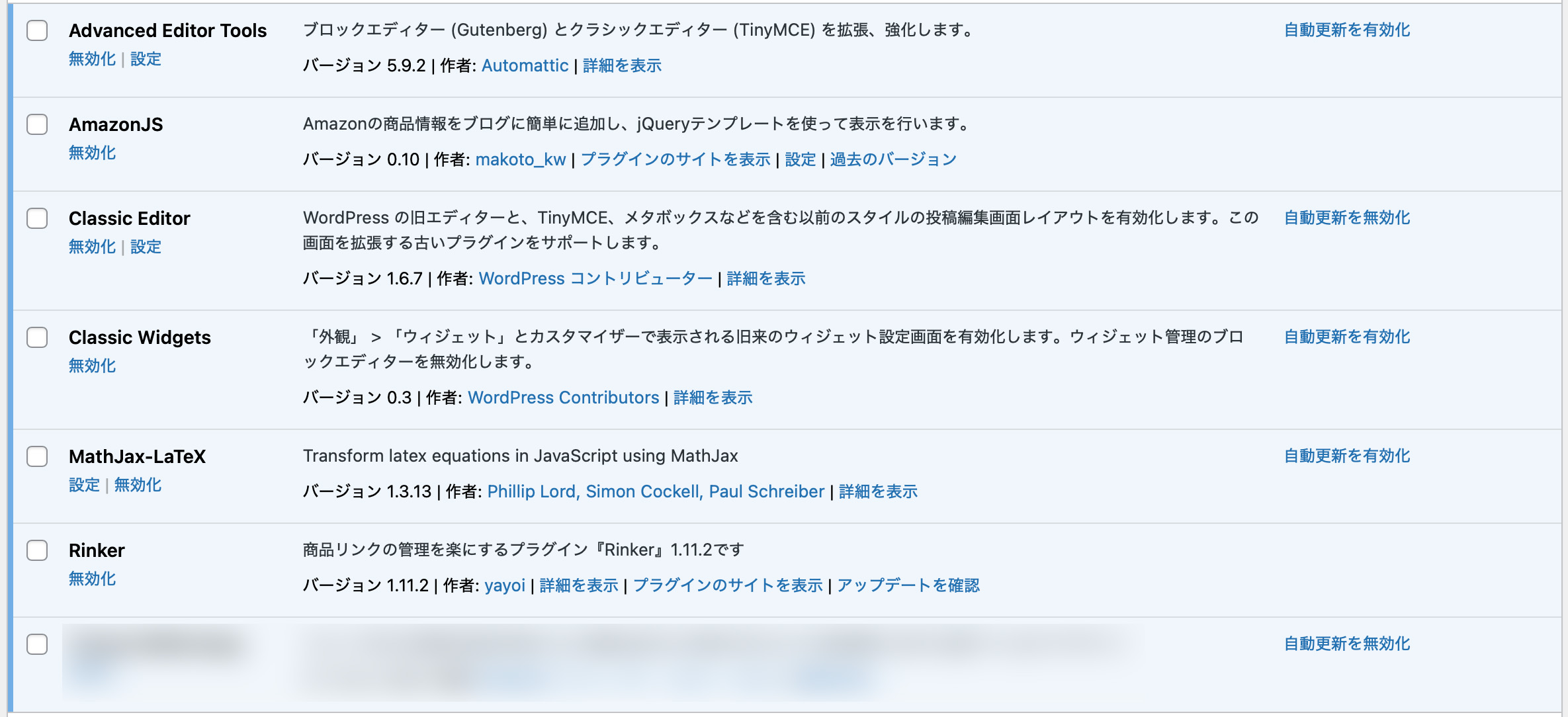 当ブログのWordPressプラグインを整理して減らしました。今残っているのは以下の7つです。