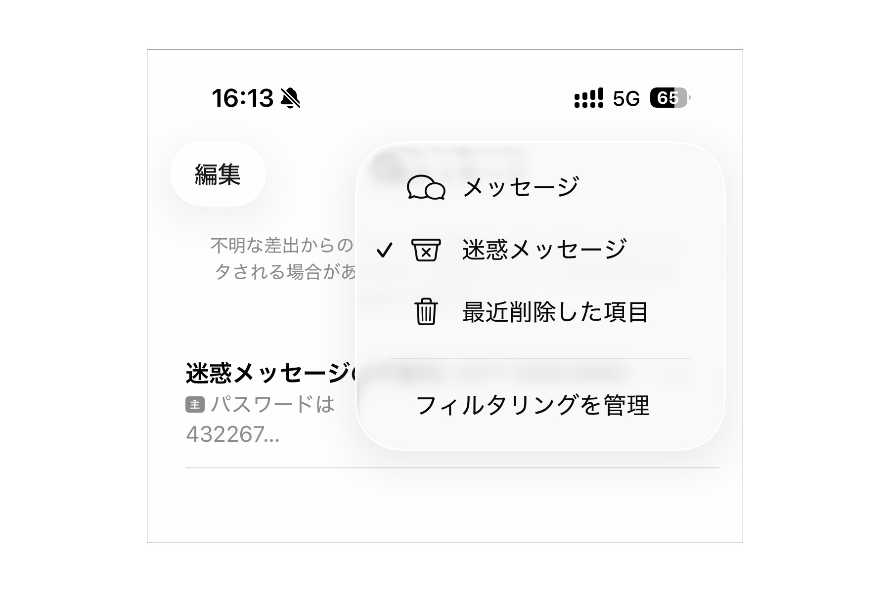 ですが気がついたのです。iPhone の SMS には、「迷惑メッセージフィルタ機能」があることに。