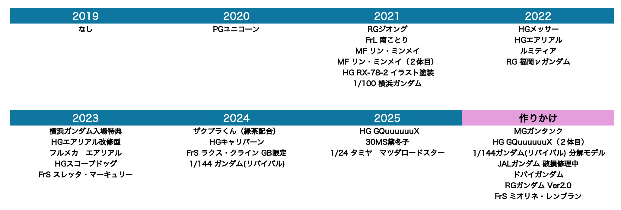 では今まで、どれくらいのペースで作ってきたのでしょうか。ブログの過去記事を参考に羅列してみます。