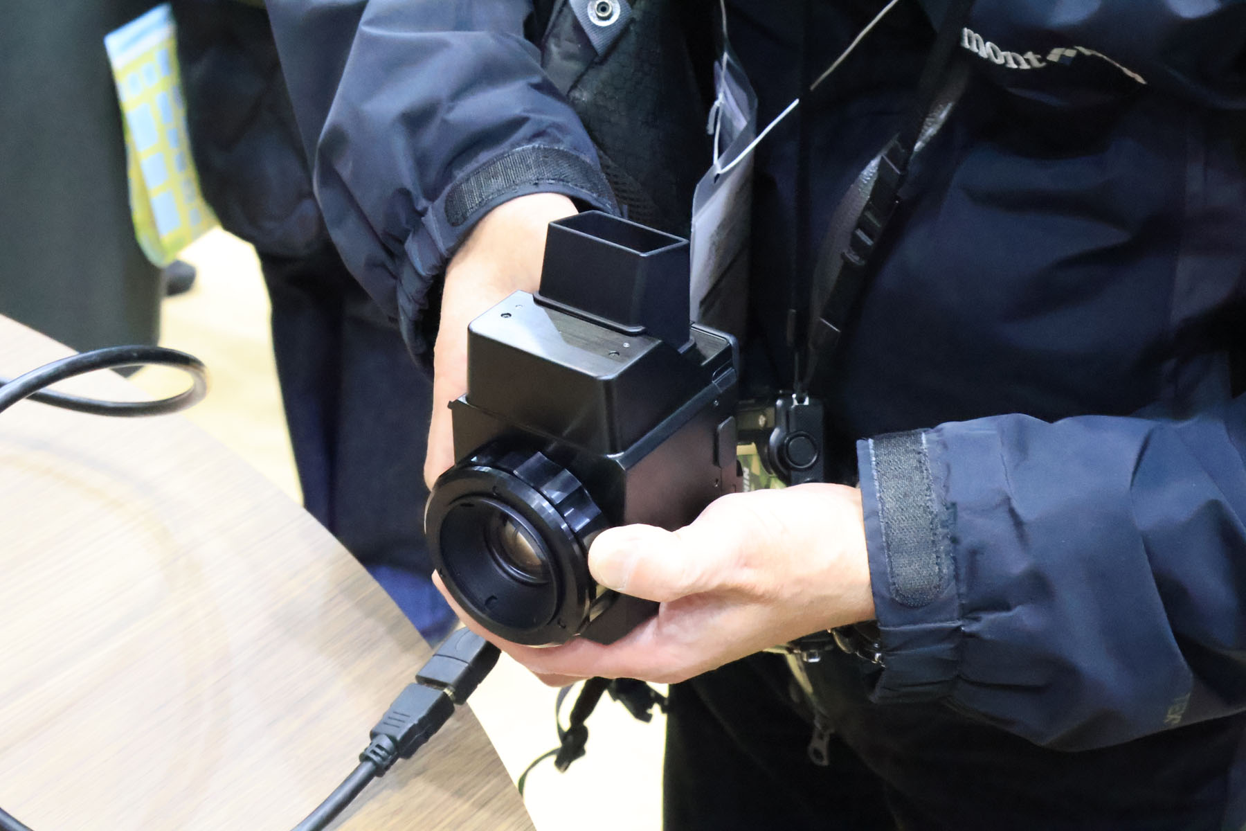 続いてキヤノンの新機軸、「アナログコンセプトカメラ」。EF 50mm F1.8の光学系に PowerShot V10 の 1インチセンサカメラを組み合わせたウエストレベルファインダーカメラ。