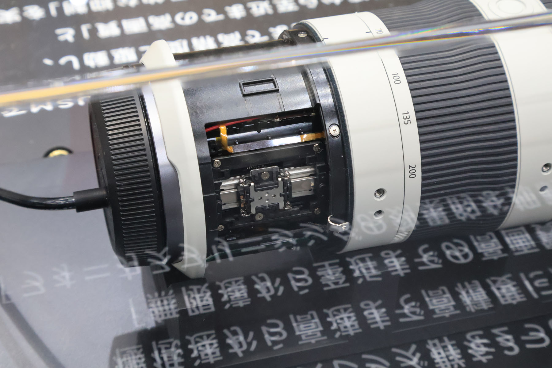 USMレンズのデモ展示。動いています。USMモーターが生で動いているの見たの初めてかも。(いや、見た感じはソニーの高級CDプレーヤーで使われていたリニアモーターとなんら変わりないんですけど…)