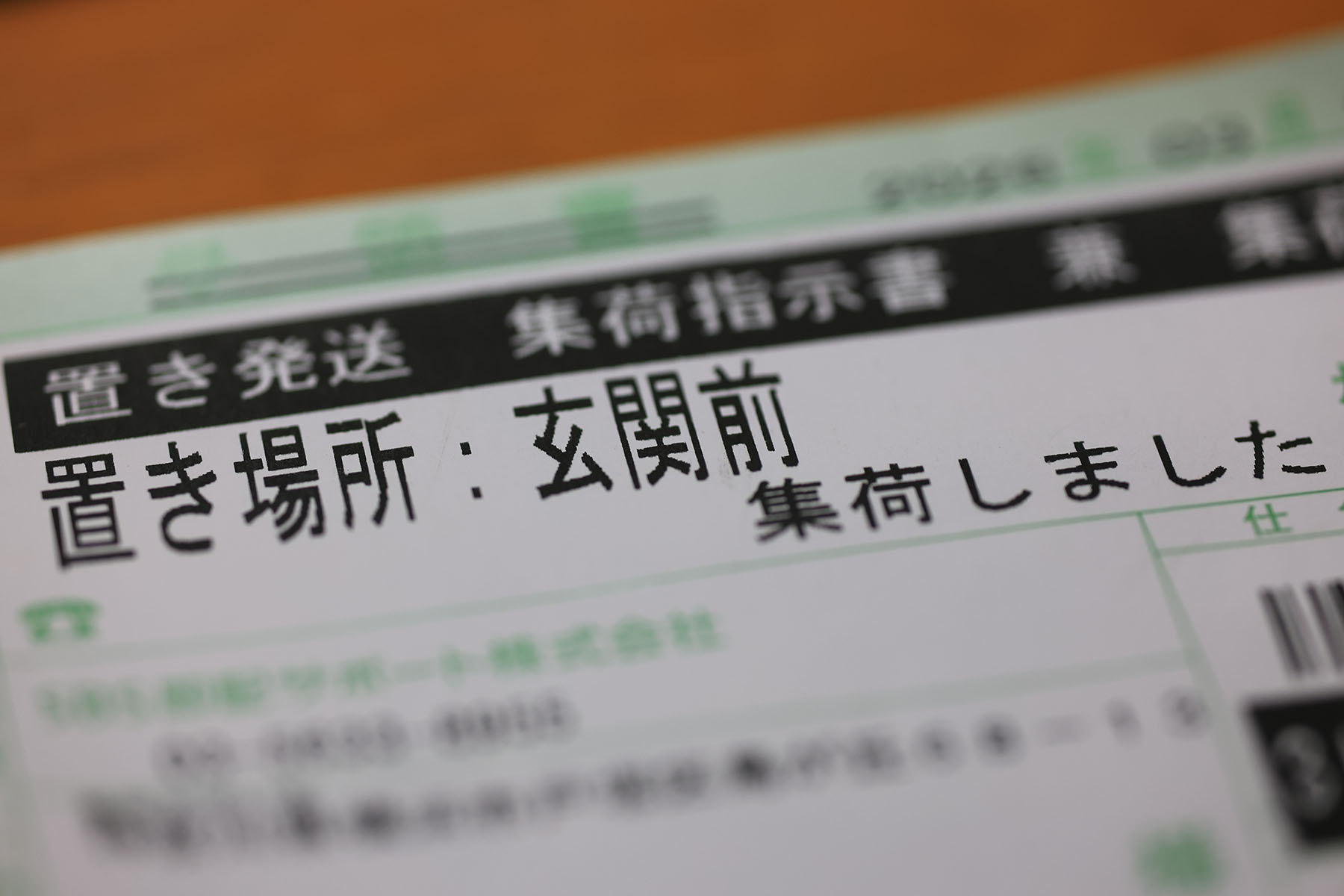 置く時間は指定されるのですが、私の場合「13:00~19:00」と6時間くらい幅がありました。13:00少し前に玄関先に荷物を置いておきましたが、15時過ぎに回収されたようでした。郵便ポストに控え伝票が入っていました。