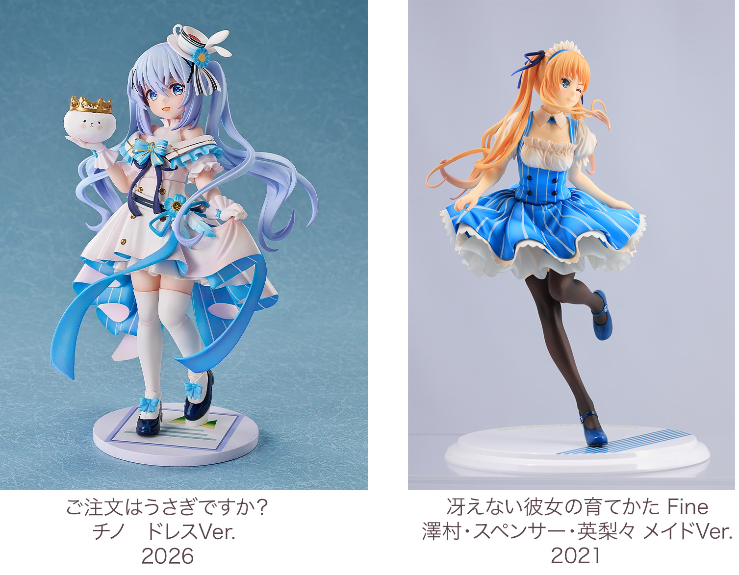 そして今年でたアルターのものが 1/8 スケール。そして今予約受付中のグッスマのキービジュアル版が 1/6 スケールです。1/6 スケールとなると全高270mm らしく、もう1/60 スケールのガンダム(全高300mm)の大きさに迫りますね。てっきりグッスマの2種類は同じくらいの大きさかと思っていましたが、まさか一回り大きいDA制服姿としては過去最大サイズとは…。