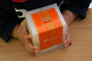 なんかケーキだと解った時点からムスメが握りしめたまま離さないんですけど。