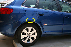 ボンネットの方はいつ付けたか判らないが、たぶん洗車時に付けたキズ。下図の黄色い丸の中のあたり。普段の洗車は濡れ雑巾で拭くだけだしな…傷つくわな…。