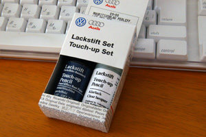 クルマこれも先週末のこと。先々週にコドモの病院の駐車場でドアパンチされて剥げた塗装を直すべく、タッチアップペイントを入手。1,365円。