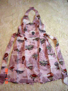 色は他にもベージュがあり、柄は細かいのと大きいのがある。上の写真は大きいの。柄が細かい方が生地が厚いような。生地が薄い方でも強度は並のエプロン以上。さすが業務用?