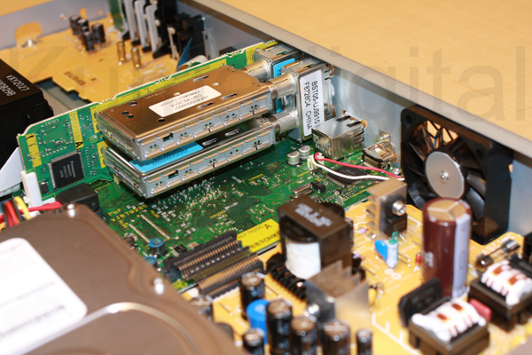 Wチューナーなので銀色の箱に収められたチューナーユニットが二階建てになっている。