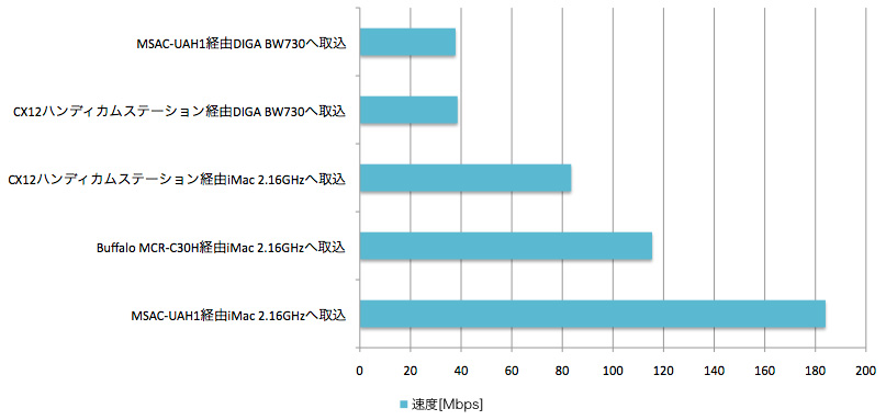「MSAC-US40は、HDR-CX12付属のハンディカムステーション使用時に較べ、およそ1.5倍の速度が出た(MacPro接続時)から、似たようなものだろうと思っていたが・・・。」