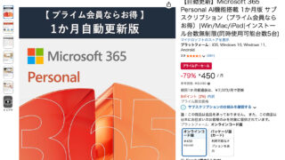 Office 365 の1ヶ月版が Amazon プライムセールで 450円で販売されています。ただしいくつか注意が必要です。・既存の Microsoft 365 のサブスクリプション期限が残存している場合、このライセンスを上乗せすると残存...