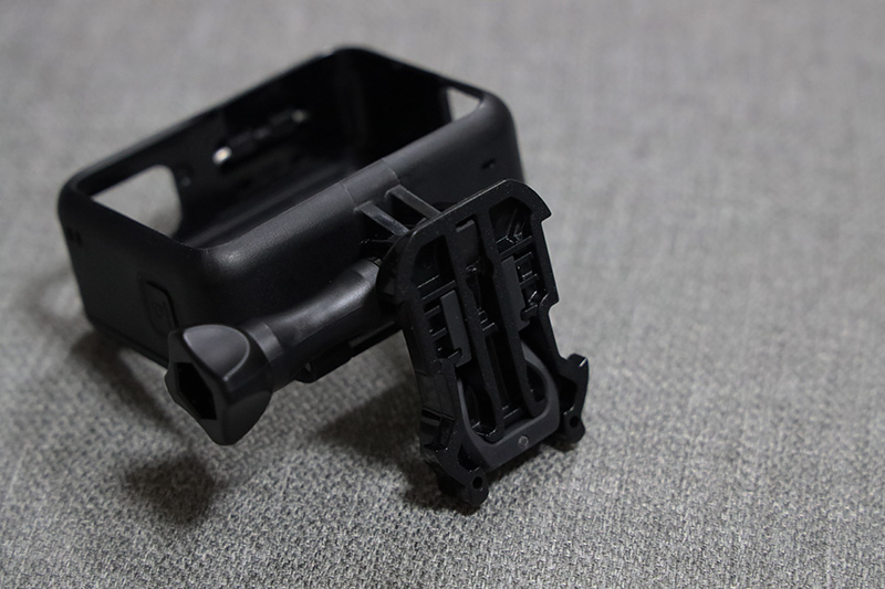 両面テープでどこかに固定する台座が2つ付いていました。片方は取り付け面が曲面で、ヘルメットなどに貼るためのもののようです。