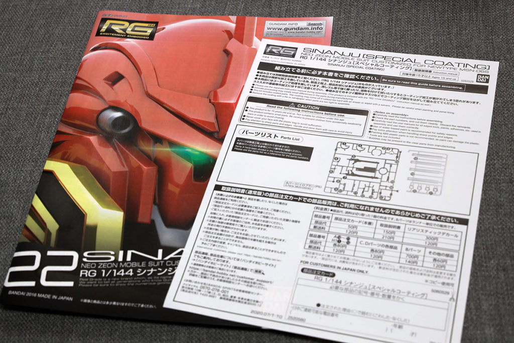 にしても、普通のRGシナンジュの倍以上のお値段がするのにこの簡素な箱は何なのか…。これなら普通の箱にシール貼り対応の方が良かったような気もします。