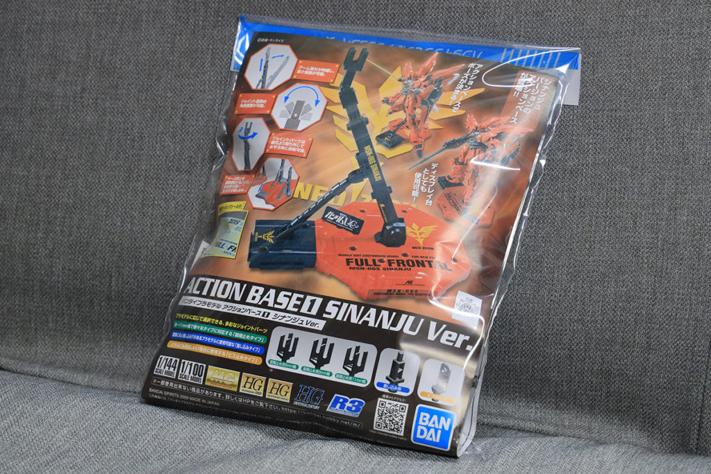 しかし先行して買っていた、このシナンジュ専用のスタンド(アクションベース)。ちょっとシナンジュ本体の凄みに負けている気がします…。これなら主張控えめなノーマル版のスタンドの方が良かったかも。