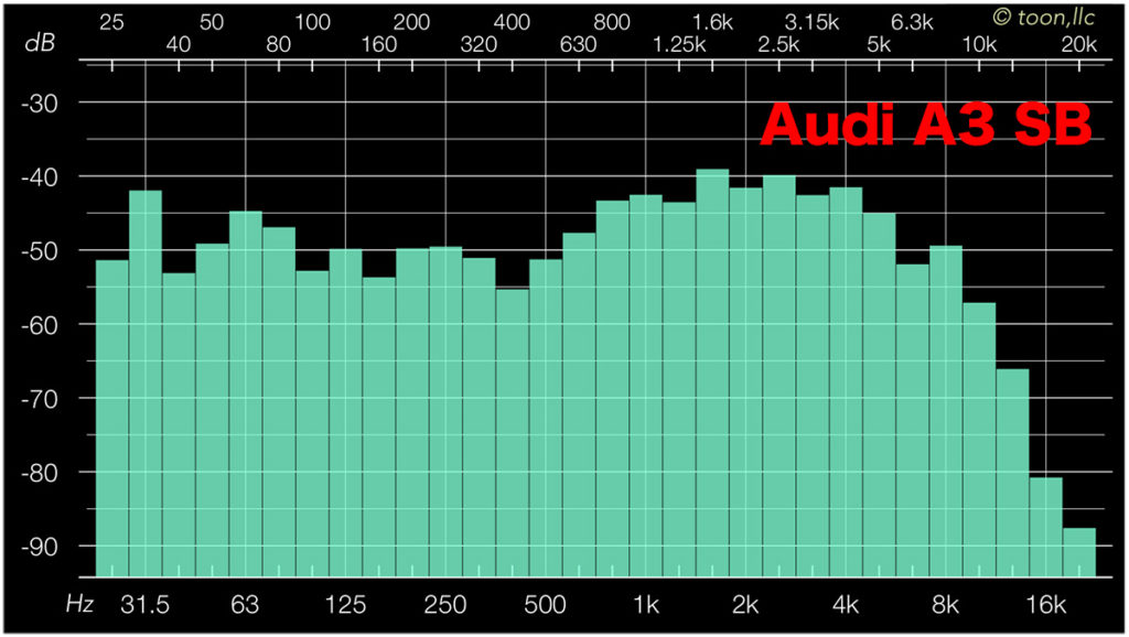 同じ条件でA3 Sportsbackだとこんな感じ。こちらも純正標準のオーディオシステムです: