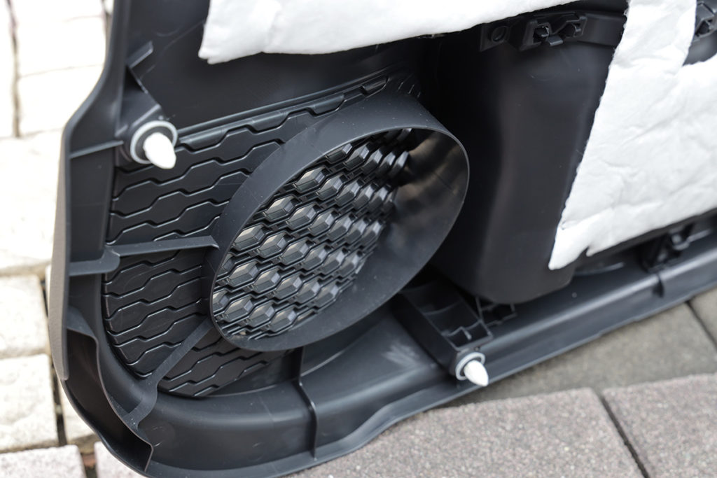 そうはいっても実はパッソの内張りも無策ではなくて、多少、筒状の成型はされています。しかしスピーカーに対して1cmくらい隙間はありますので、多少は背面からの音と干渉してしまうでしょう。