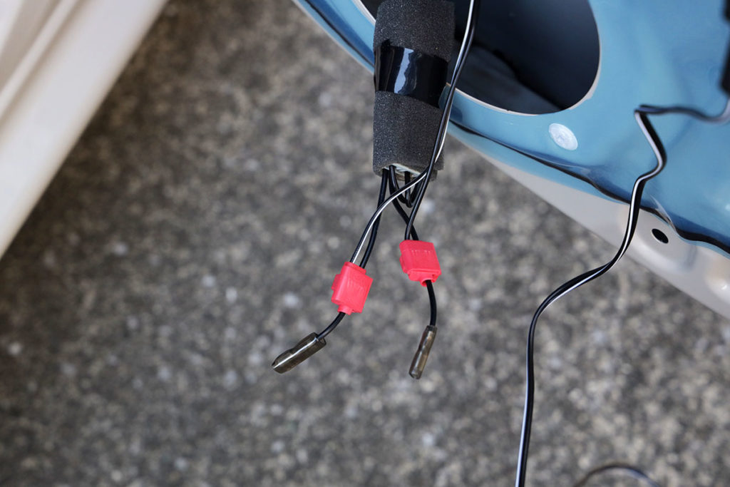 →テスト走行したところ右リアドアから配線が振られて当たるようなカタカタ音が出たので、配線の取り回しを少し変えて完了。