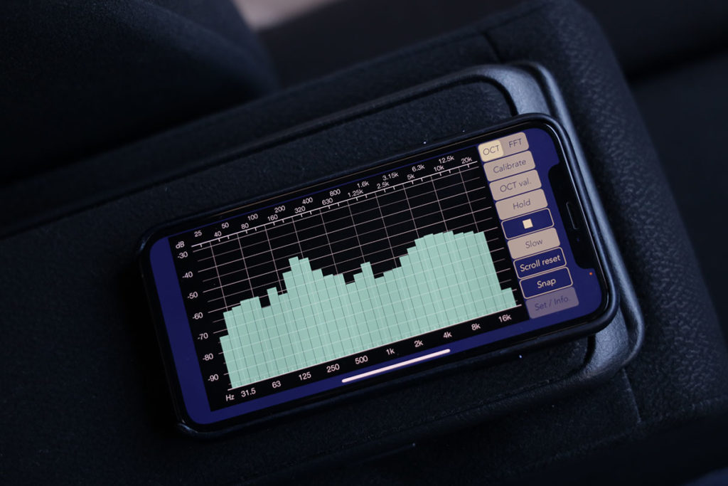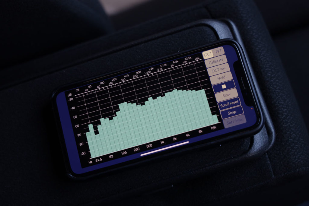 さて、ここまででも今までとは別次元の音ですが、もう少し追い込みます。スマホを2台用意し、片方をカーオーディオに接続し、ホワイトノイズを流します。
