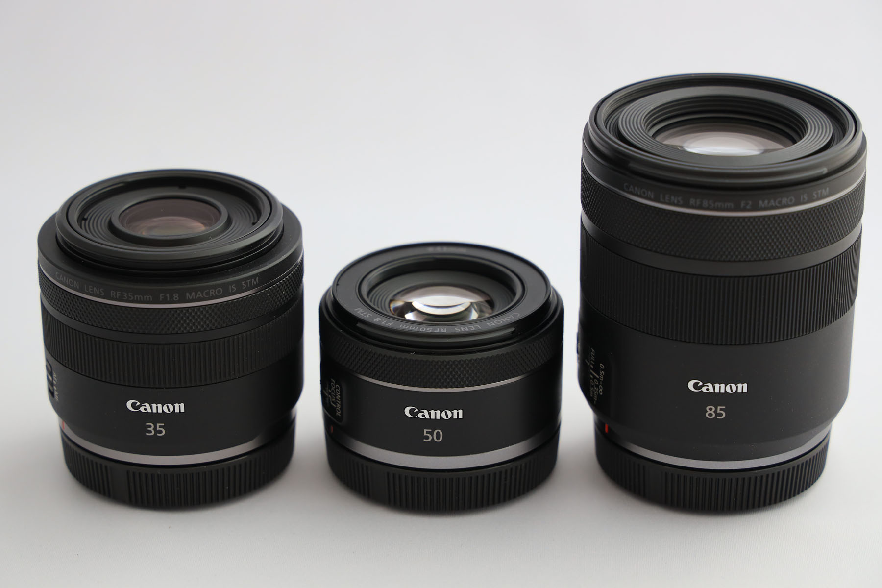 昨年購入したRF 35mmに加え、このたびRF 50mm、RF 85mmを購入。