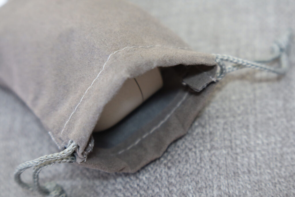 20年くらい前のPanasonicの有線イヤホンに付属していたポーチ。ピッタリですが、Panasonicの主張が気になります。