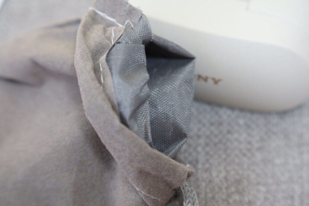 裏地も起毛だったら良かったんですけど、ウインドブレーカーのようなポリエステルのシャカシャカした素材。まぁホコリが出ないのでこれはこれで良いです。SONYロゴが擦れて消えることもないでしょう。