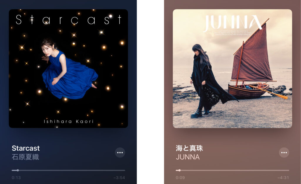 まず石原香織の「Starcast」から。石原さんは私の中では輪廻のラグランジェの「京乃まどか」役か、色づく世界の明日からの「月白瞳美」役として有名。繊細な声だと思います。Starcastはこの冬の新曲。低音方向のレンジは広くありませんが、石原さんの繊細な声がWH-1000XM4ではシルキーに表現されます。初代1000Xより全体的に刺激的なところがありません。音場もよりフワッと広く広がります。