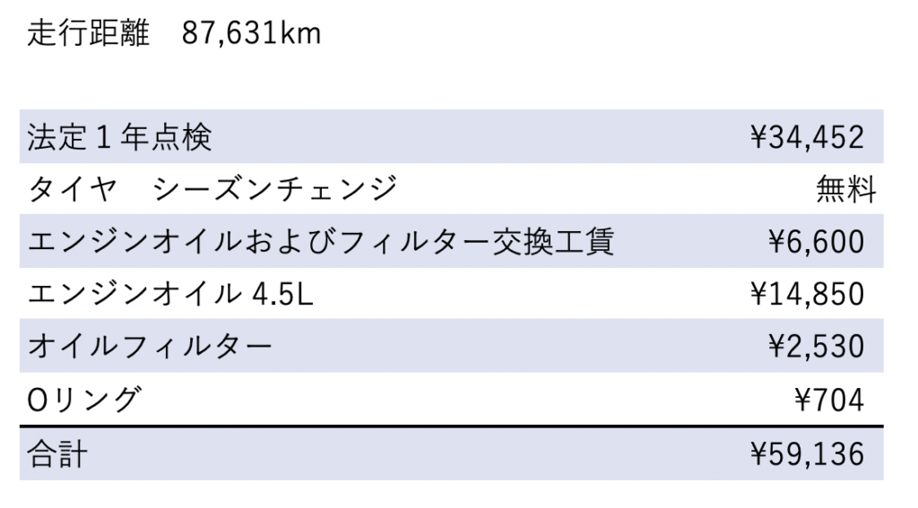 6年目の点検が終わりました。なお走行距離は87,631km、前回2021年5月の車検で71,752kmでしたので、11ヶ月で15,879km、1ヶ月で1,400kmほど走った計算になります。在宅勤務も多かったので、想像していたよりは走りませんでした。