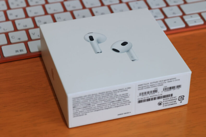 カナル型のProではなく、耳引っ掛け型の第三世代です。ずっと買うべきか悩んでいたのですが、娘がAirPods Proを便利そうに使ってるのと、職場の同僚も電話会議などで便利そうだったので欲しくなった次第です。