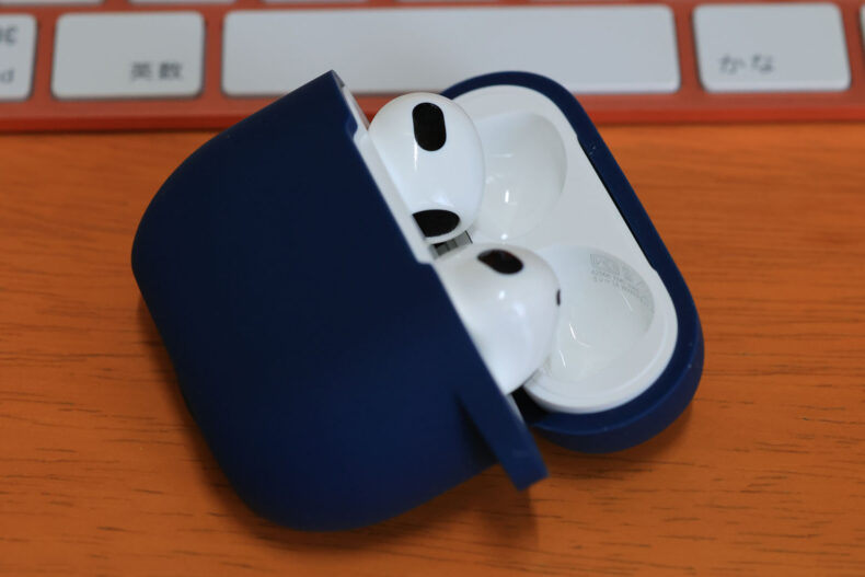 このAirPodsは仕事道具として(ある程度雑に)使う予定なので、シリコンケーズも一緒に買いました。iPhone画面保護フィルムで実績のあるNIMASO社のものです。千円しませんでした。