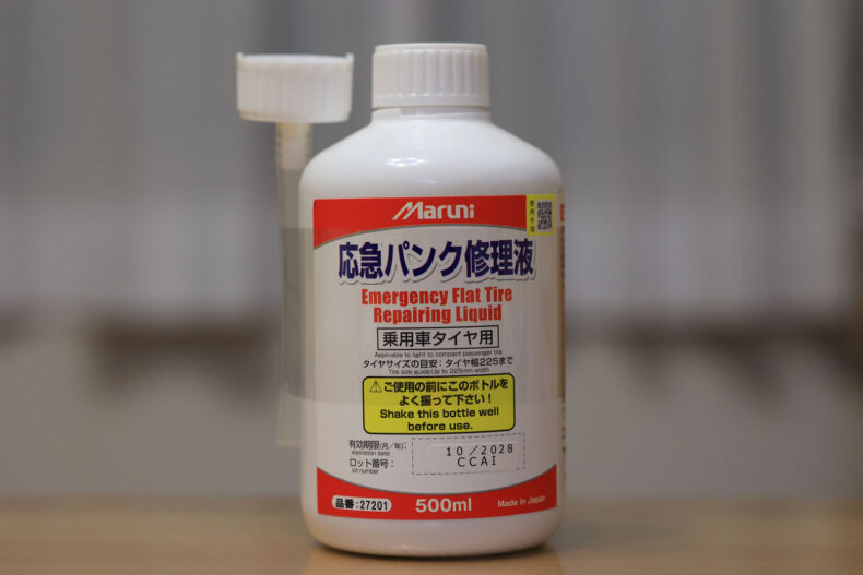 A3をリコール修理に出したら、ちょうど7年目の車検半年前と言うこともあって車検見積もりを取られてしまったのですが、その内容がかなり盛り盛りでこのディーラーでは見たことがないような内容でした。たとえばスプレー(バルサン?)式のエアコンクリーニングだったり、ガソリン添加剤(しかも知ってか知らずかメーカー規定量の2倍)だったり、900円近く取るウインドーウオッシャー液だったり、スペアキーの分まで合わせてCR2032×2個で1,000円取るキーリモコンの電池だったり、エンジンオイル+フィルター交換で27,000円だったりとか諸々で合計36万。要らないもの削ったら21万くらいにはなりましたけど、その中で「おや」と思ったのが、2019年8月に期限が切れていたという車載のタイヤパンク補修剤。