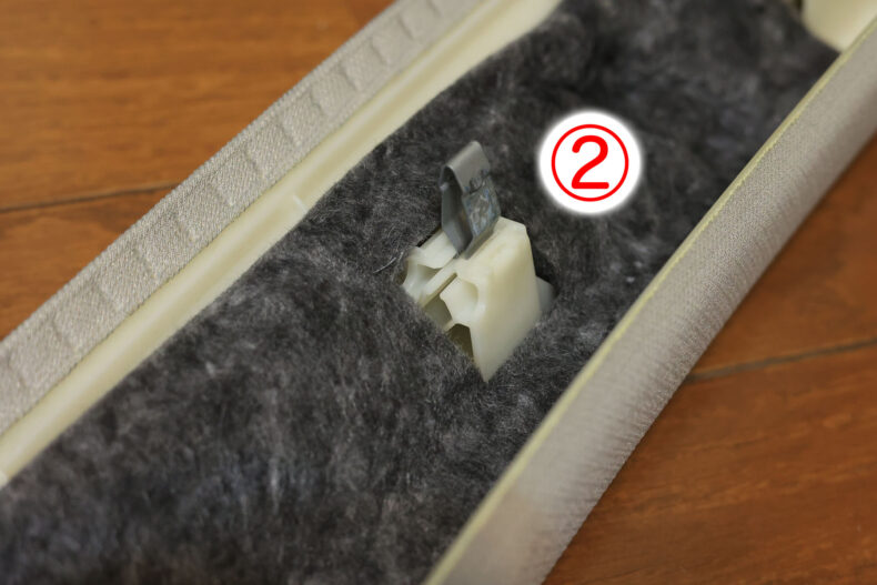 ②の爪、これが一番難しいです。固いわ抜けないわでとにかく部材を割らないように力をかけるしかありません。「斜め上に引っ張る」という動作が一番効くのはこの爪です。