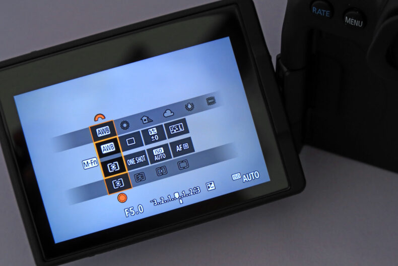 ファームウエアは一眼レフのEOSの時代からの地続き感を大事にしているせいか、メニュー操作系で統一感が失われている箇所が散見されます。一例を挙げますと、[測距エリア選択モード]に入っている状態で、画面にずらりと選択可能な測距エリアが表示されるのですが、これがM-fnボタンでの順送りしかできなかったりします。マルチコントローラもメインダイヤルもサブダイヤルもフォーカスポイント移動に割り当たってしまっており、肝心の測距エリア選択に使えないのです。この操作系(メインダイヤルとサブダイヤルでカーソル移動)は完全に一眼レフEOS時代からの名残で、マルチコントローラ搭載機についてはそろそろ見直してもいいと思いますけどね。
