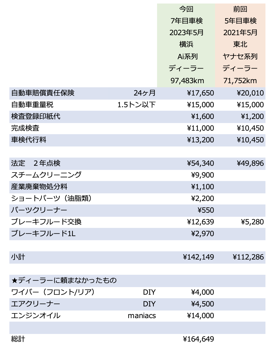 さて今回の車検費用ですが、バッテリーも補充電をしていったのでお咎めなし、オルタネータープーリーよりグリス飛び散りで交換推奨とのことでしたが、これもすぐ壊れるとは考えられず修理(7万円かかります)を見送り、エンジンオイルもmaniacsで交換したこともあり、全体としては輸入車としてはかなり抑えられたと思います。ただ、前回車検を行った東北のヤナセ系列ディーラーと比較するとさすが首都圏だけあってチョコチョコと追加コストが乗せられていて、トータルでは3万くらい高い印象。港北の maniacsさんなら東北のヤナセと同じくらいの金額でやってくれると思うので、次回は maniacsさんに頼むかどうか悩むところです。