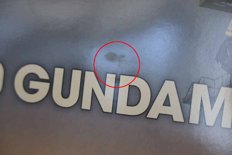 原因は胸のインナーパーツでした。これが内側から箱をグイグイ押すので、輸送中に擦れてしまったのだと思います。箱があと1cm、厚みがあったら良かったのに…。