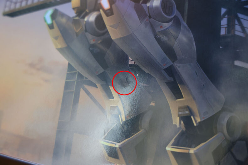 ダメージはもう1箇所あります。上の写真の赤丸のところです。