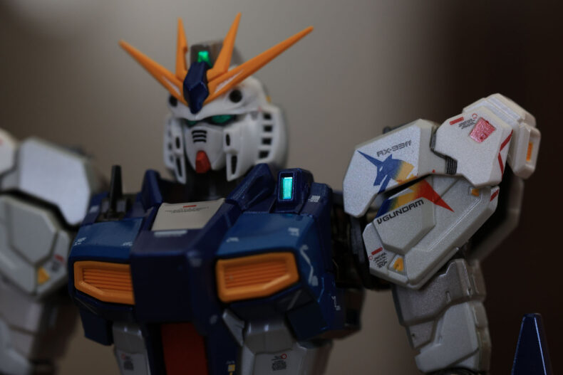 全体の作りはMETAL BUILDほどのソリッド感はないのですが、「超合金」の名を冠したオモチャとしてはトップレベルの完成度と言えると思います。RG RX-93ffと入れ替えて飾ろうかなぁ。