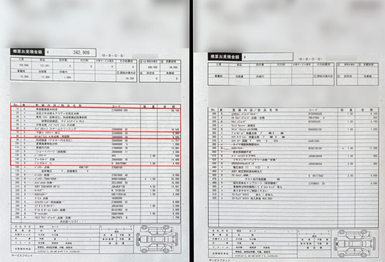 A3 (8V) を9年目の車検に入庫してきました。入庫時に見積もりをいただいたのですが、前回もそうだったんですが今回も清々しいくらいのぼったくり見積もりでして。