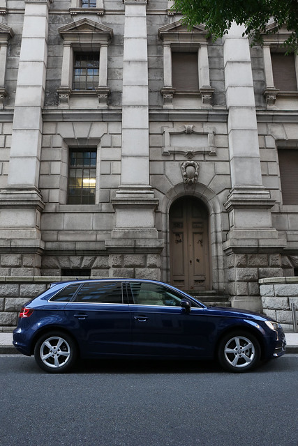 アルミホイールは1.4TFSI用のメーカー純正のものがどうしても好きになれず、また、メーカーOPのものもほとんど輸入がなく価格面で不利とのことで、ディーラーOPの中から5スポークタイプを選択。昔から5本スポークのアルミに憧れていたが、5台目にしてようやく装着。実はこれはウインター用で、ドイツ本国のカタログによると「210km/h以下で使用のこと」という制限が付いているのだが、どうも調べてみると1.4TFSIは最高速度の実力値は197km/hのようなので問題ないと判断した。幅も純正の6.5Jから6Jになったが、どちらの幅でも215/55R16は入るとのことなので、生産時装着タイヤを外してつけてもらった。おそらくこのホイールを夏も履いているA3はほとんど走っていないと思う。