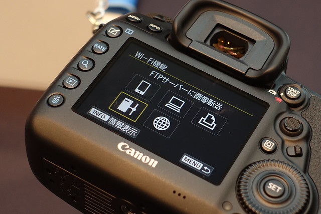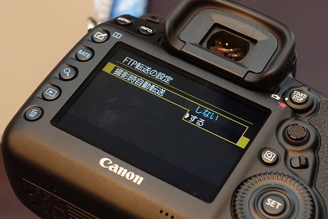 気になるところを片っ端から試したり係の人に質問したりします。まずこれがWi-Fi設定画面。撮影したそばから自動転送する場合は、パソコンにフリーのFTPサーバーを立ち上げておいて、カメラ側はFTPサーバーを選ぶっぽい?