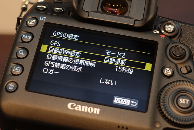 スリープした場合。EOSってスタンバイ電力が超低いので、電源を切らない人も多いと思うんですよね。しかし「モード2」でスリープしたところで、GPSは切れないんです。つまり、GPSをモード1にしようがモード2にしようが、今までEOSの電源を切るクセのなかった人は、気がついたらバッテリーがカラ、という目に遭うわけです。スタンバイ電力が超低いのが、EOSの差別技術だと思ってたんだけどなぁ。