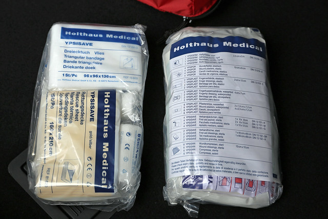 パンク修理キットの他に、何やら赤い袋がありました。救急キットのようです。前のA3には付いていませんでした。