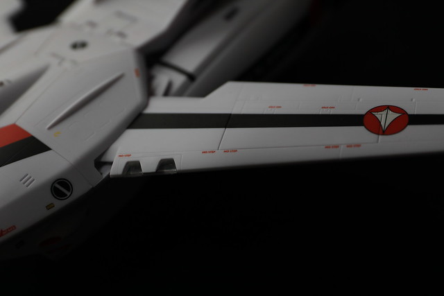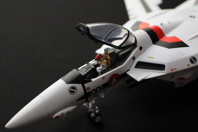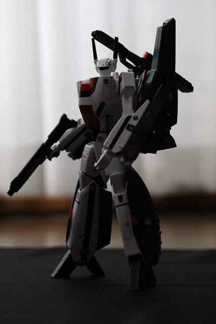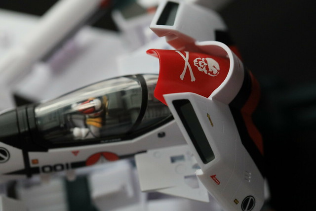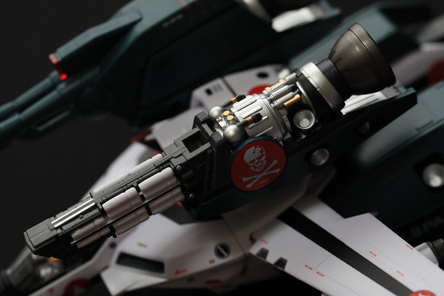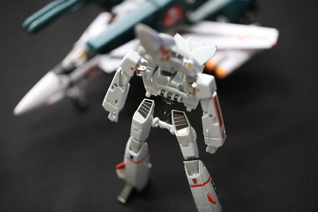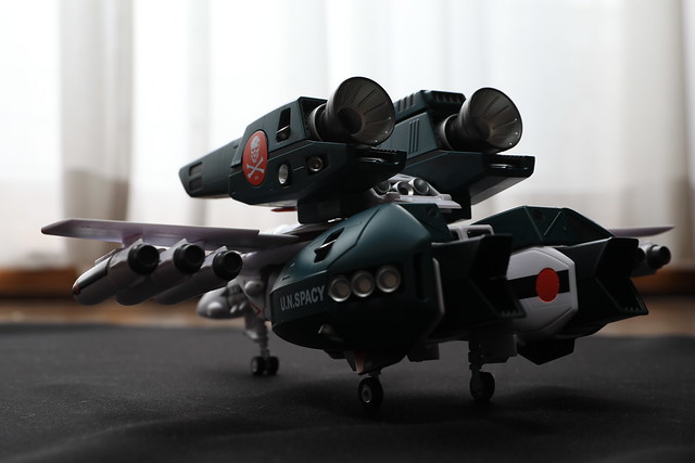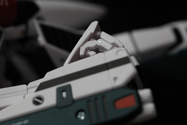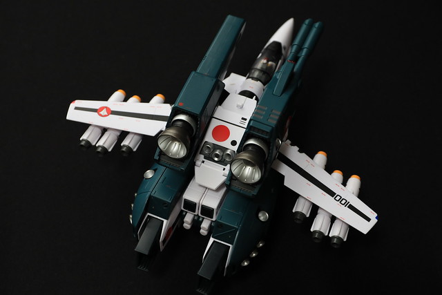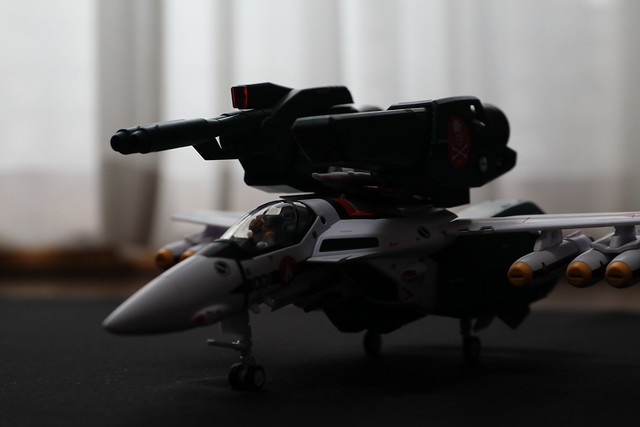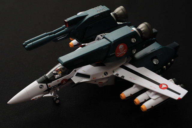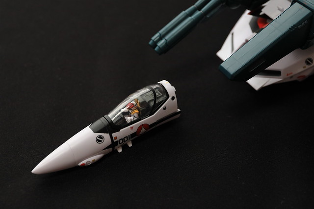 そういえばTV版の2話でしたっけ?で示された、機体のコクピット部分のみを外して他のVF-1系に吊り下げるというギミックもあるようなのですが、これをやるには2機必要なので試せず。