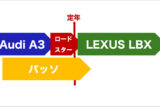 というか、サスペンションが硬いせいで人が乗ったときの沈み込みが少なく、乗車状態ではアウディA3よりもクリアランスがある印象でした。