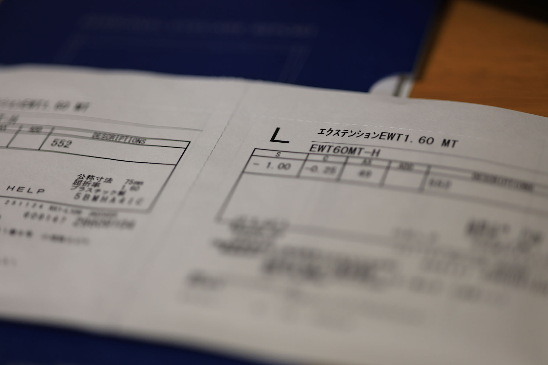 レンズは今回もHOLT(HOYAの廉価版)の両面非球面プラスチックレンズ「エクステンションWAS」です。「エクステンションEWT 販売名:エクステンションWAS」と何だかよく分からない命名になっています。なんか色々しがらみがありそうですね。屈折率は1.60。メガネスーパーで安いメガネとなるとレンズは これ一択ですが何ら問題ありません。