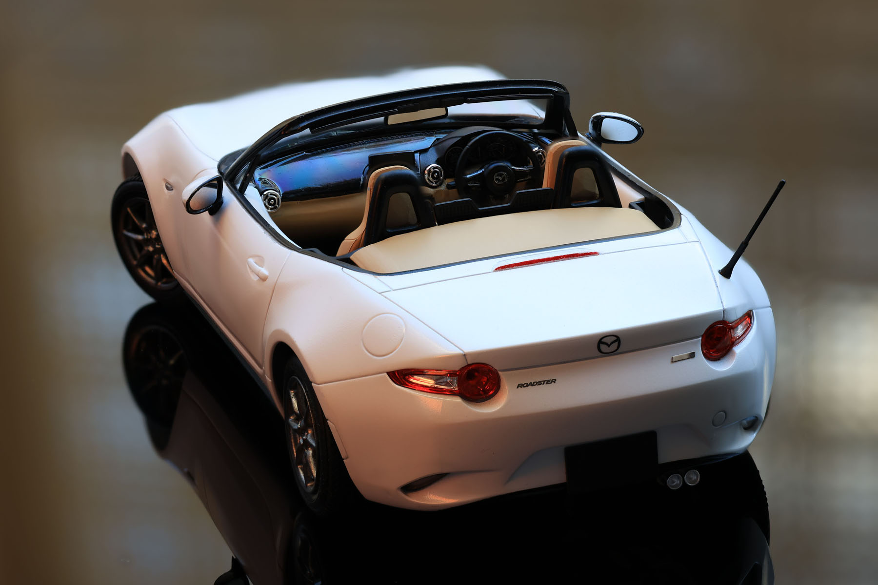 実車の方は、比較的手頃な価格(維持費が安い、故障が少ないことも含む)でオープンカーで…ということで選んだロードスターですが、なにげにすげぇカッコイイデザインであることにも気がつきました(今頃かよ)。